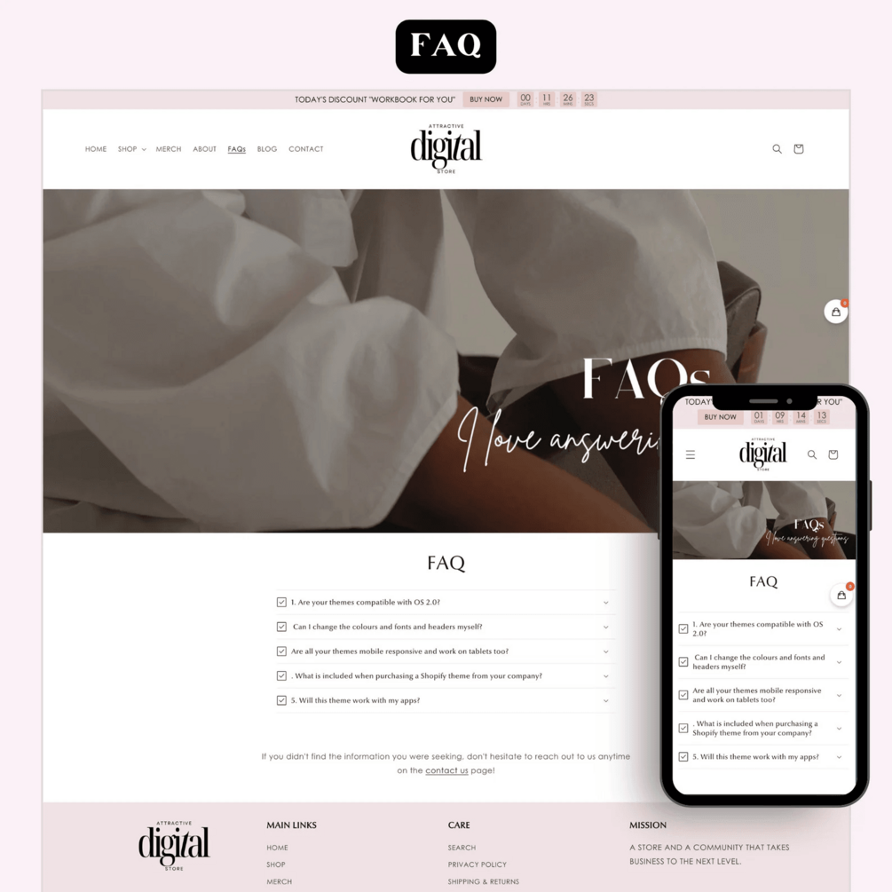 Pink Shopify Theme for Digital Products Ecommerce Business Clean & Minimal Website Template Online Store Design Printables Canva Banners 2.0